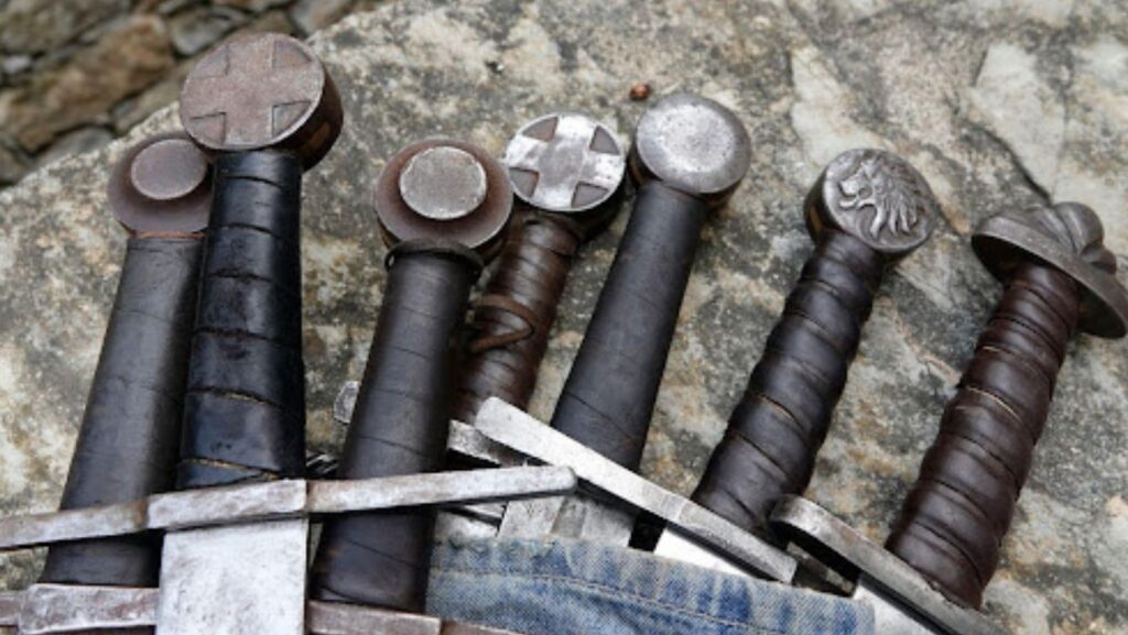 Swords and reenactment weapons show initial similarity through their blunt edges and historical shapes and steel materials. The two weapons start to display their different characteristics. Reenactment weapons exist to create authentic visual displays while their users perform coordinated movements. Buhurt swords function as weapons which allow fighters to strike each other with full force during battles.